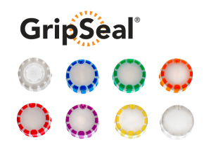 Contrasting color strips on GripSeal caps enable easy identification.