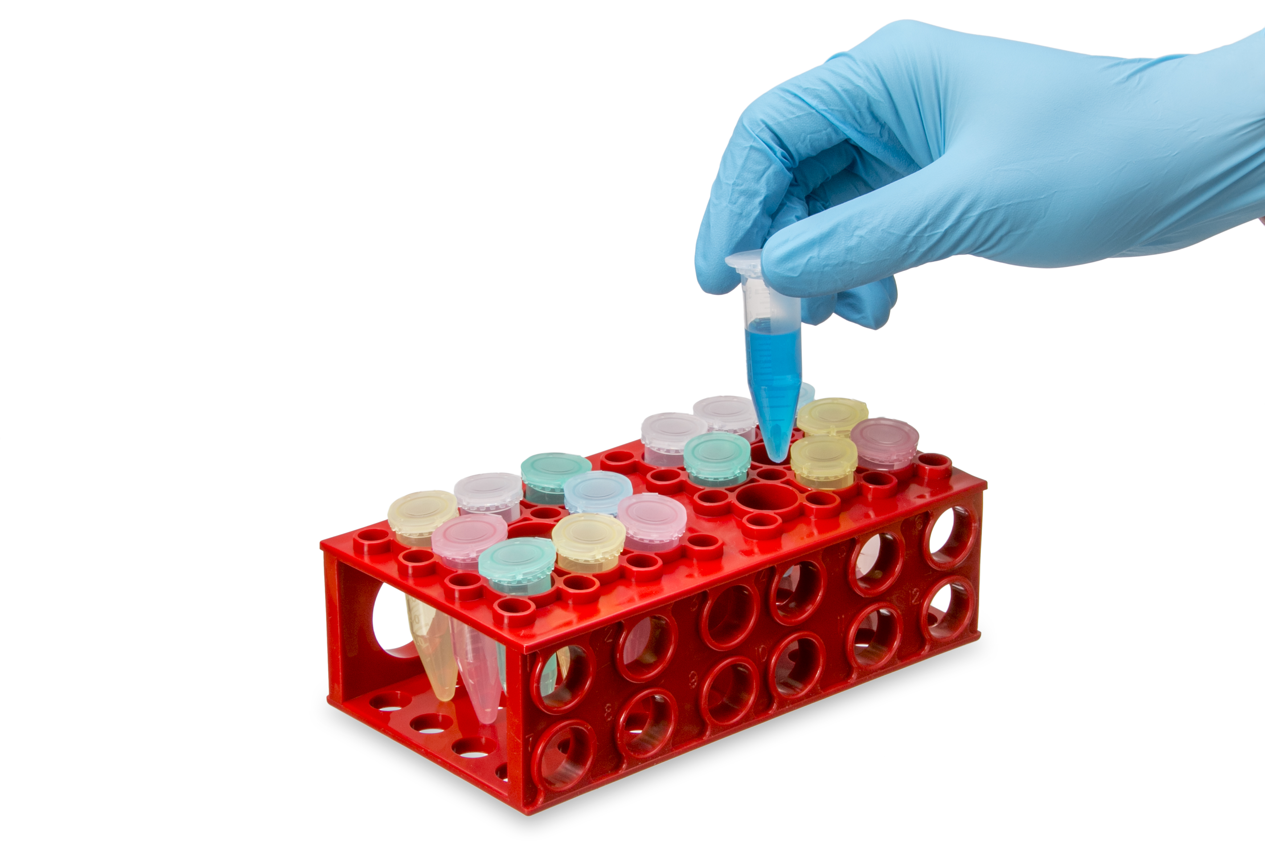 • A space-saving, convenient way to house multiple sample sizes, from 0.5 mL to 50 mL tubes.